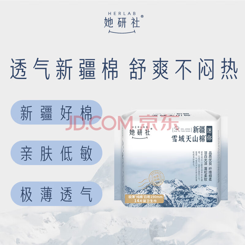 商品相册:她研社新疆棉迷你卫生巾日用护垫190mm14片超薄纯棉姨妈巾京东自营第