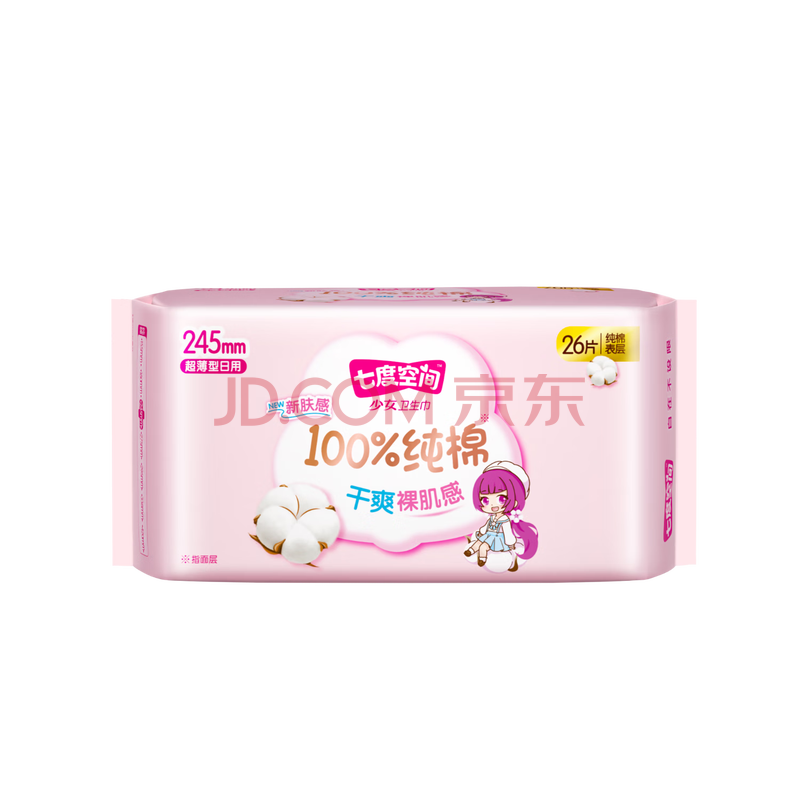 商品相册:七度空间少女超薄透气姨妈巾100%纯棉日用卫生巾245mm*26片【新国标认证】第