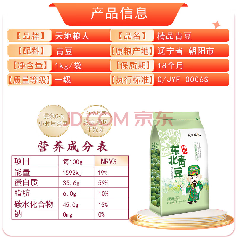 商品相册:天地粮人甄制天地粮人 精品 青豆2斤(可炒菜 煮汤 粗粮杂粮)第