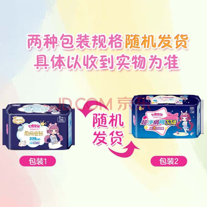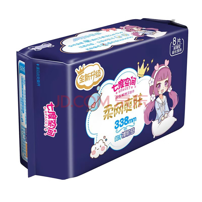 商品相册:七度空间少女系列绢爽超薄338mm夜用卫生巾8片*4包共32片(新老包装随机发)第