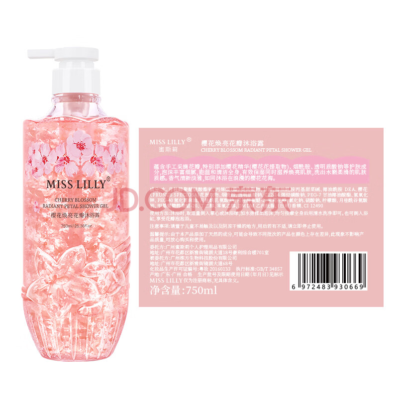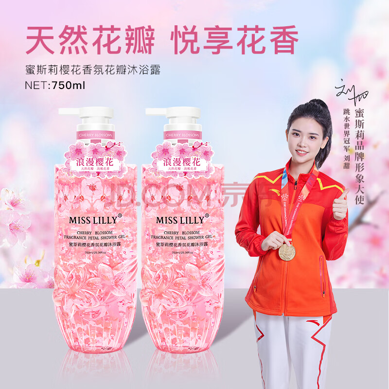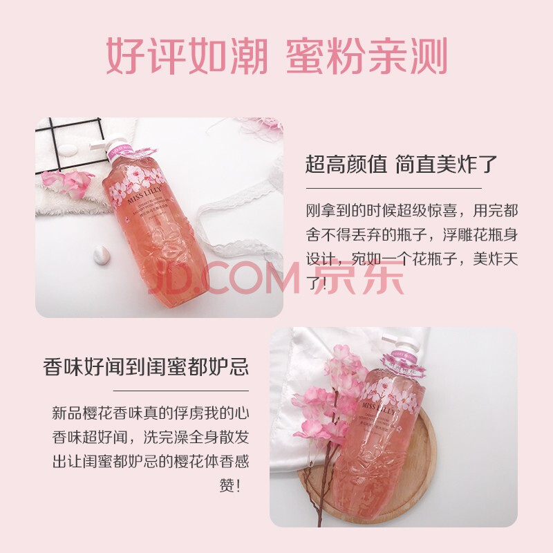 商品相册:Miss Lilly 蜜斯莉樱花香氛花瓣沐浴露750ml 男女通用第