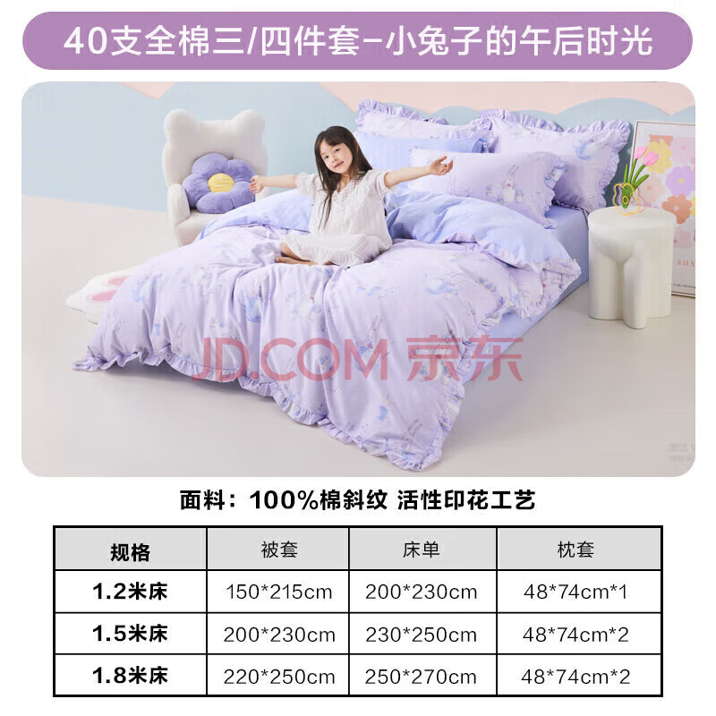 商品相册:罗莱儿童四件套 母婴A类100%精梳全棉被套床单枕套纯棉被罩 200*230第