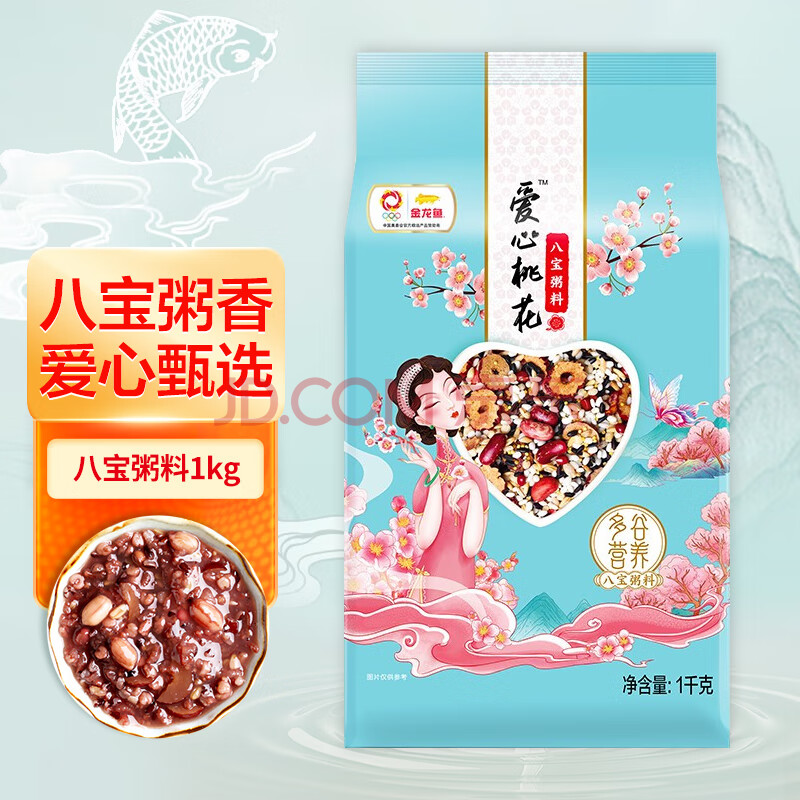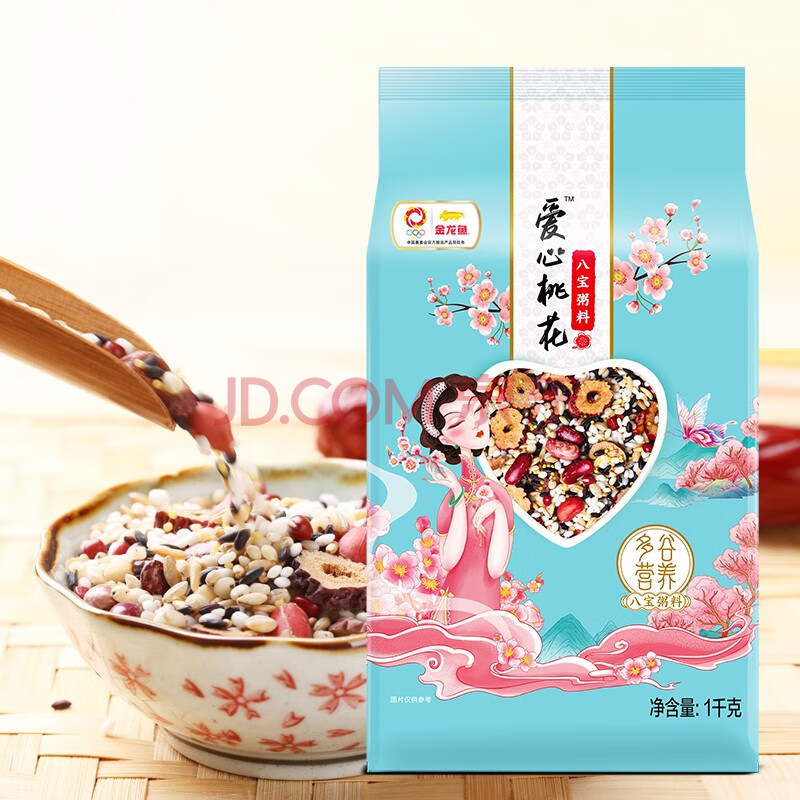 商品相册:金龙鱼 八宝粥 五谷杂粮 爱心桃花八宝粥料2斤 黄小米 红小豆 燕麦 黑米第