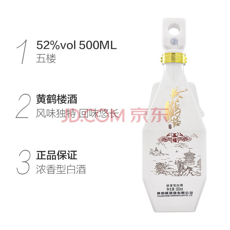 商品相册:黄鹤楼更上层楼五楼 浓香型 52度白酒 500ml单瓶装 纯粮酒 自饮 送礼第
