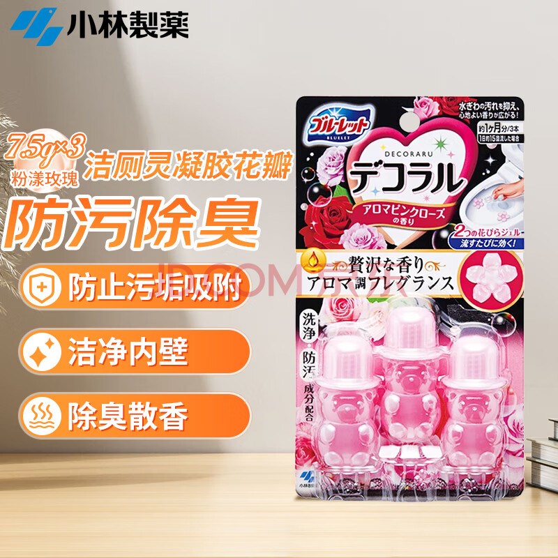 商品相册:小林制药(KOBAYASHI)洁厕灵凝胶花瓣(粉漾玫瑰)7.5g*3瓶日本进口去异味厕所除臭剂第