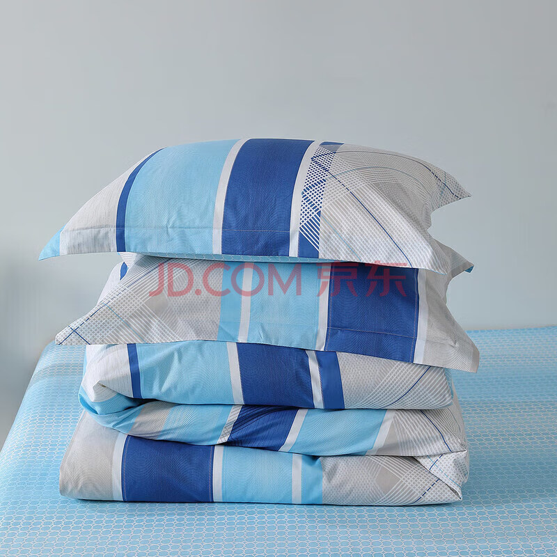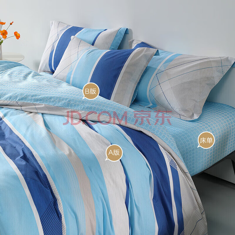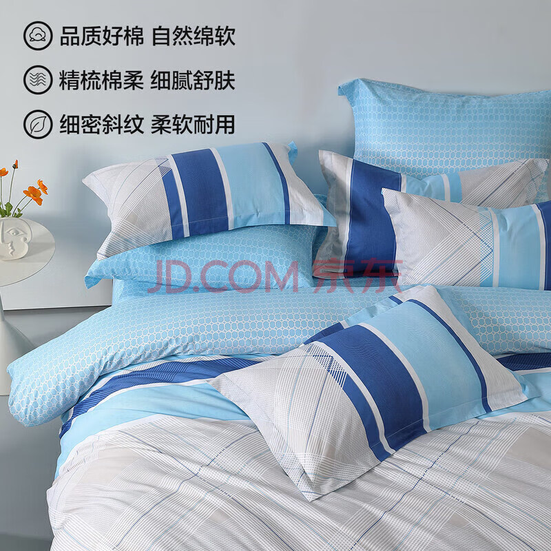 商品相册:水星家纺四件套床上纯棉被套床单枕套床上用品套件1.5米床新蓝语第