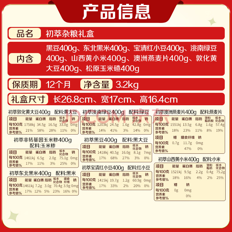 商品相册:初萃中粮杂粮礼盒6.4斤(400g*8袋)8种谷物豆类 节日送礼 企业团购第