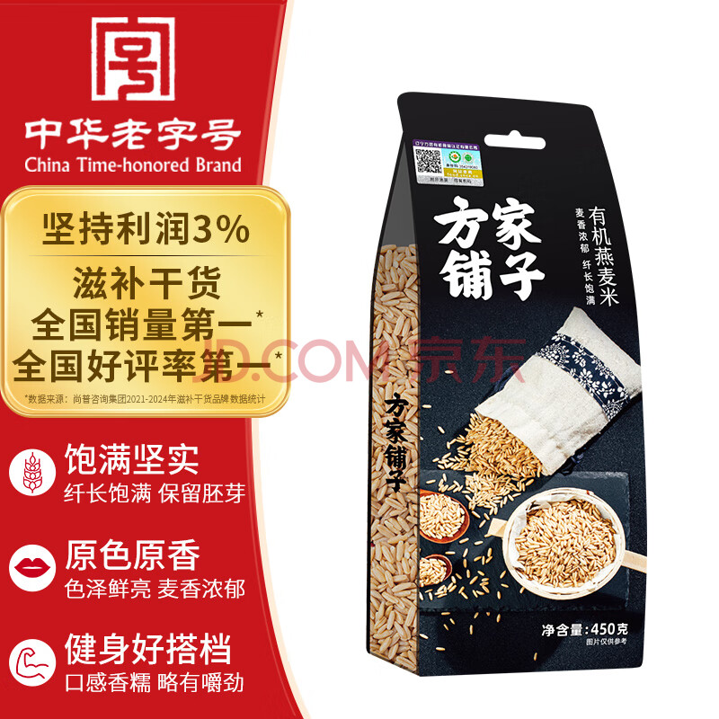 商品相册:方家铺子中华老字号 有机燕麦米450g 麦仁米 五谷杂粮米 粗粮 第