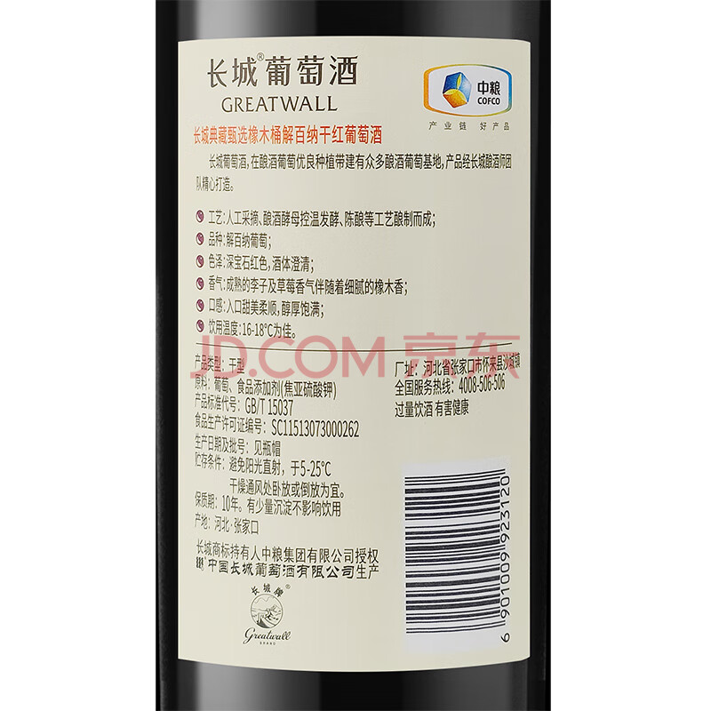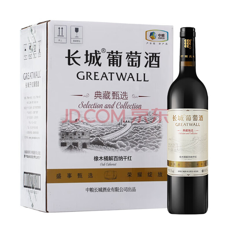 商品相册:长城典藏甄选橡木桶解百纳干红葡萄酒750ml*6瓶整箱装红酒第