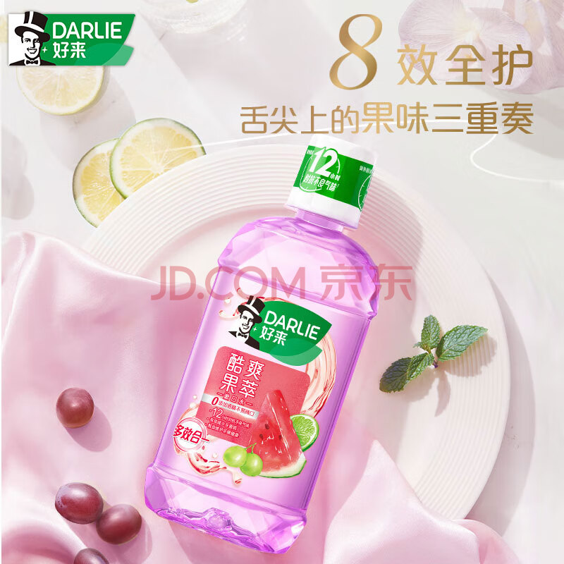 商品相册:好来(DARLIE) (原黑人)酷爽果萃漱口水500ml 口腔防护 减少细菌滋生新旧包装第