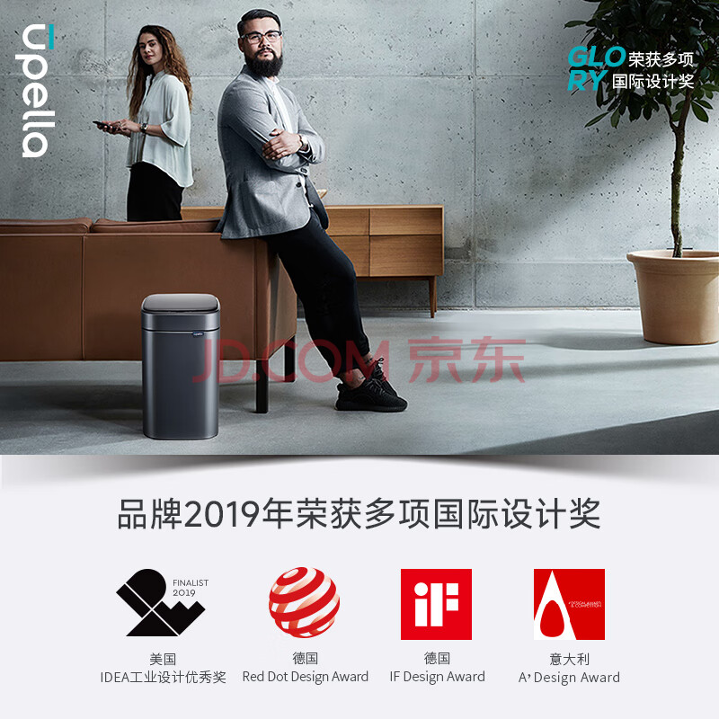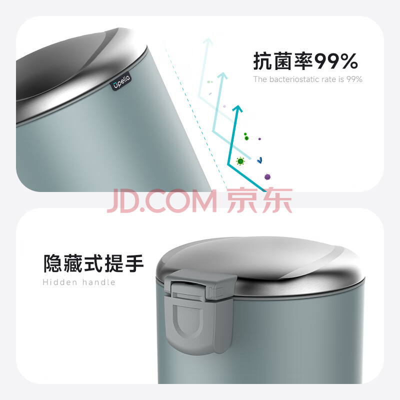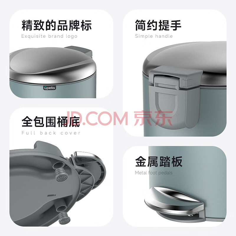 商品相册:优百纳(UPELLA)不锈钢垃圾桶12升脚踏厨房客厅家用办公室带盖垃圾筒百慕灰第