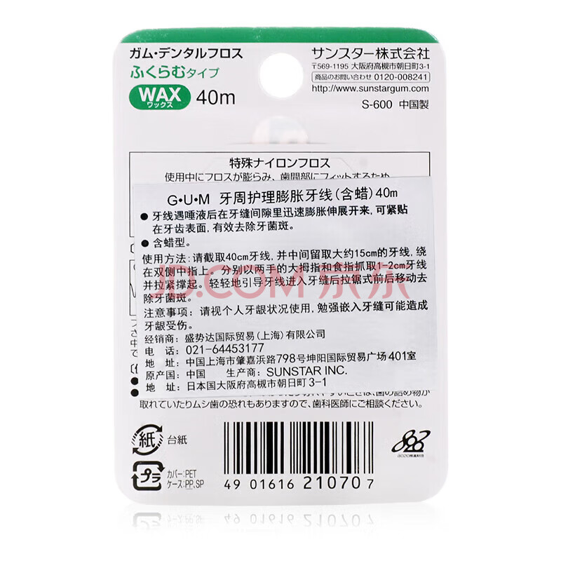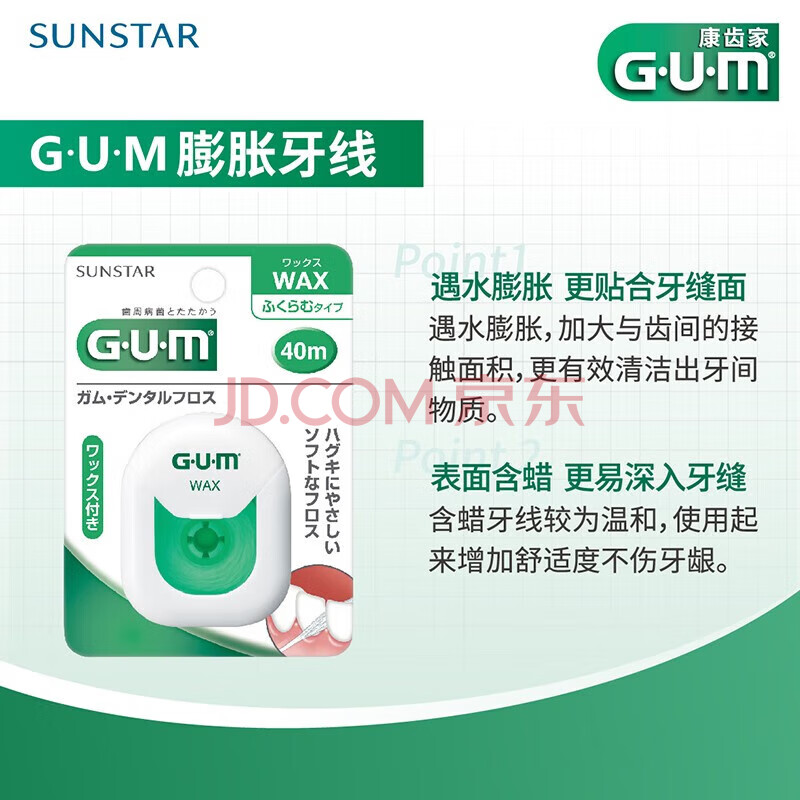 商品相册:G·U·M康齿家膨胀牙线 清洁护理牙龈齿间牙周护理 40米含蜡型第