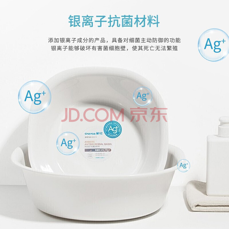商品相册:CHAHUA茶花 塑料盆26cm1只装银离子抗菌洗脸盆子洗衣服内裤水盆*第