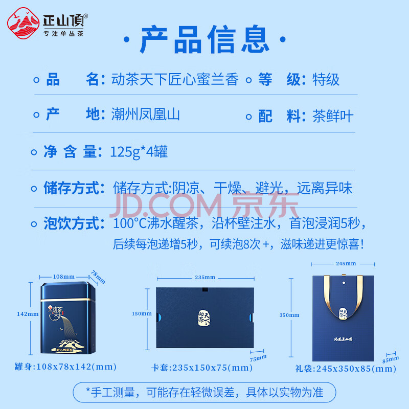 商品相册:正山顶茶叶礼盒浓香潮州凤凰单枞乌龙茶蜜兰香单丛罐装500g匠心传承送礼第