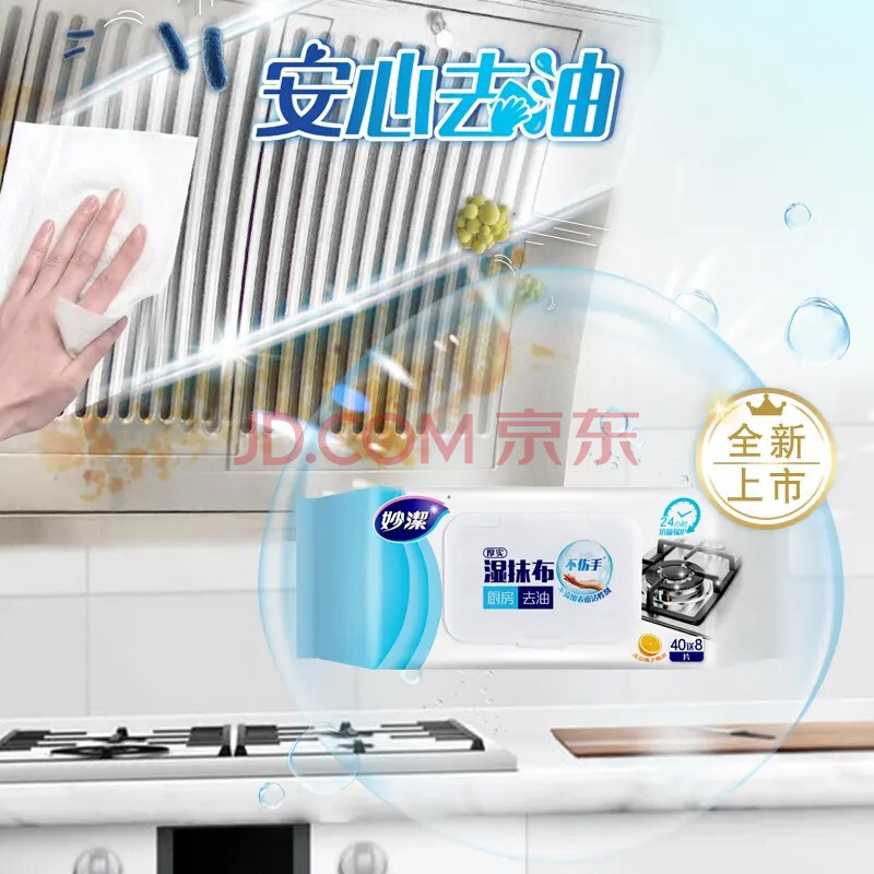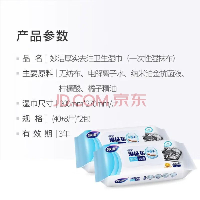商品相册:妙洁 厨房湿纸巾 20*27cm48片装*2包 懒人抹布厨房用纸家用神器去油污第