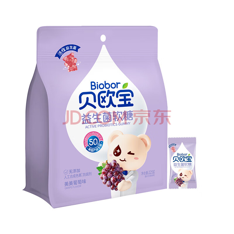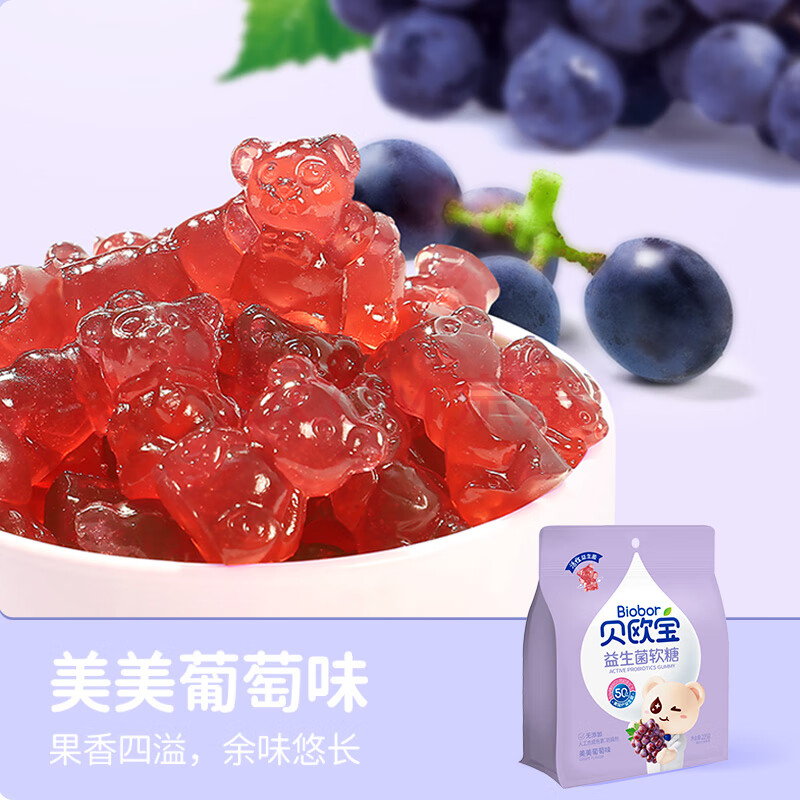 商品相册:贝欧宝活性益生菌软糖 225g 葡萄味 休闲零食 儿童零食 糖果第