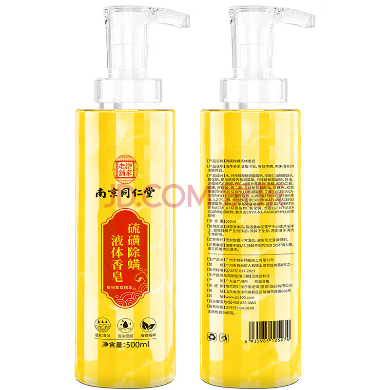 商品相册:同仁堂硫磺除螨沐浴露液体香皂液止痒持久留香控油去螨虫后背祛痘500ml 第