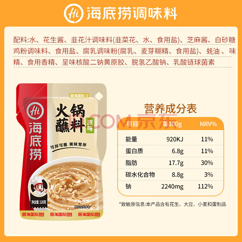 商品相册:海底捞火锅蘸料量贩(原味芝麻酱120g*2+香辣味芝麻酱120g*2)组合480g第