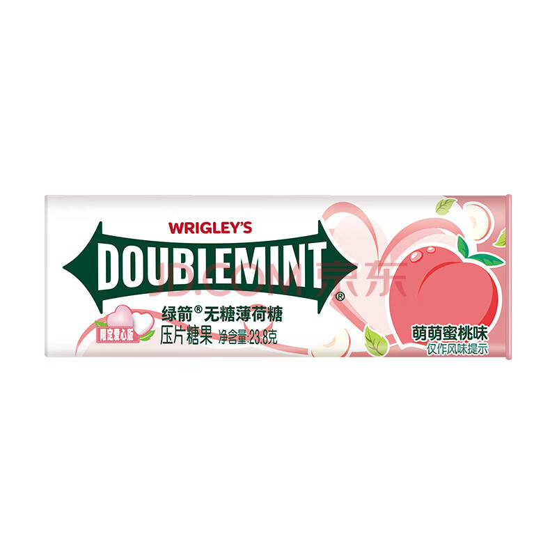 商品相册:绿箭 无糖薄荷糖 萌萌蜜桃味23.8g约35粒/瓶 休闲零食糖果 口气清新糖第