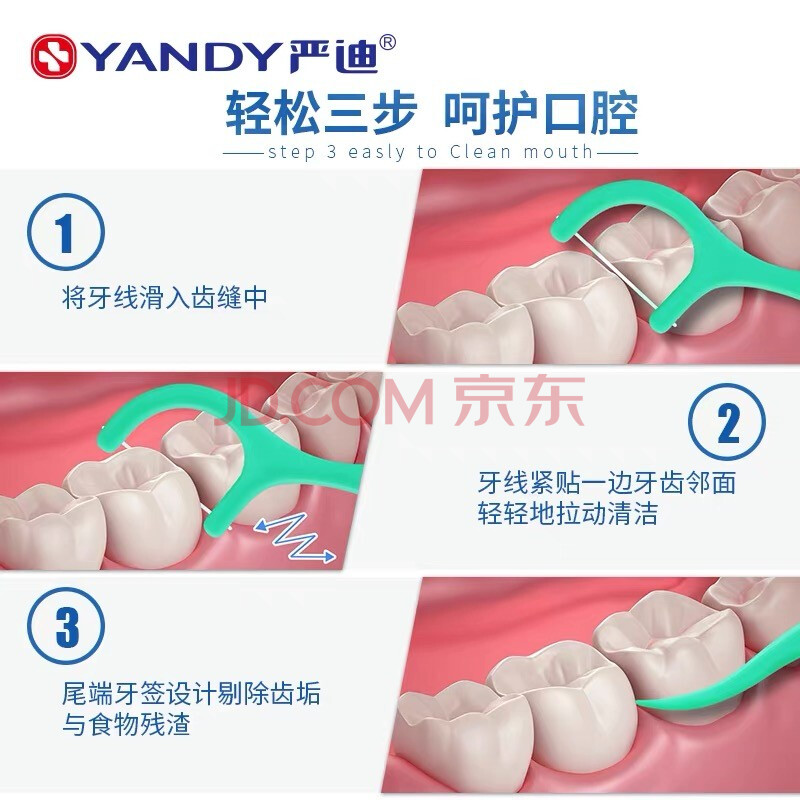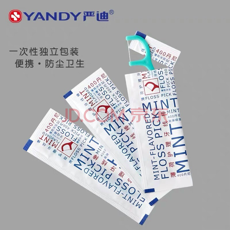 商品相册:严迪(YANDY)薄荷护理型牙线棒独立装50支(高弹细滑 薄荷涂层)第