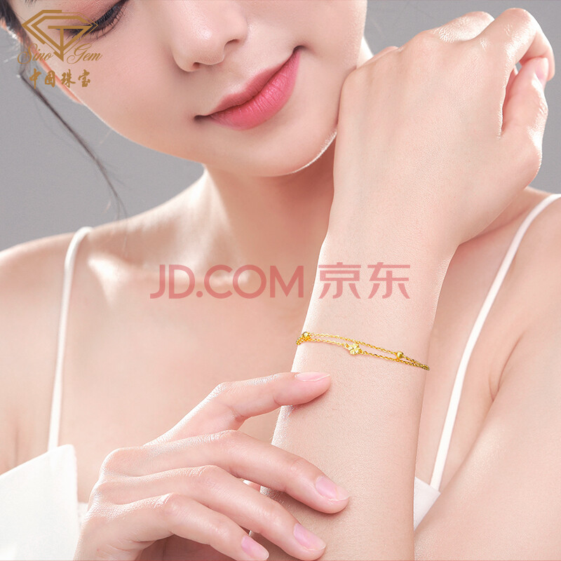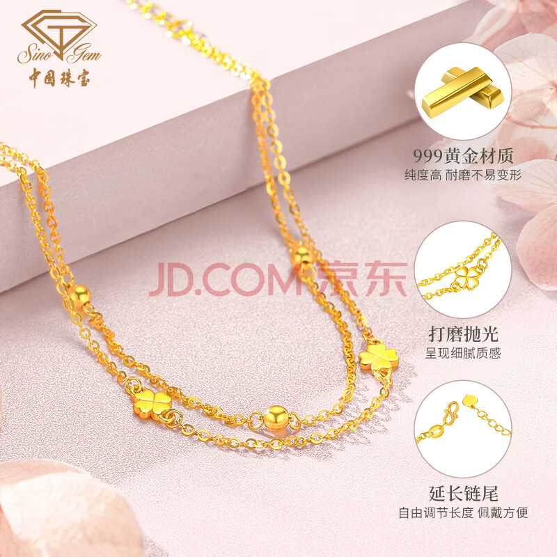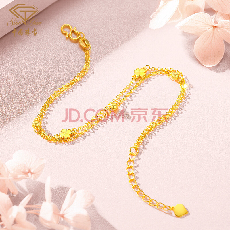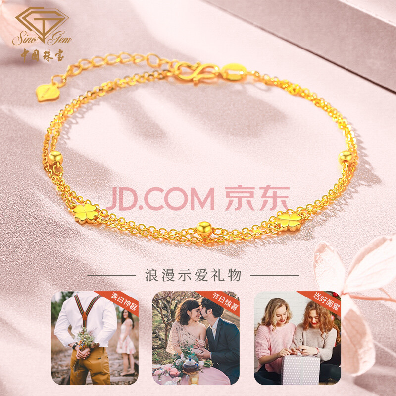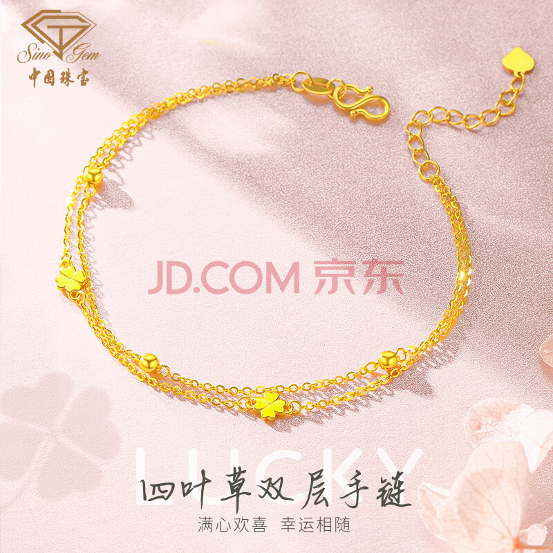 商品相册:中国珠宝生日礼物送女友黄金手链女足金999转运珠四叶草送女友第