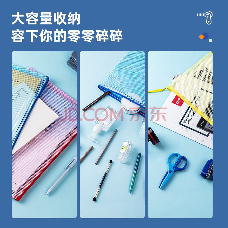 商品相册:得力(deli)63469 A4彩色透明文件袋拉边袋 网格拉链袋资料袋档案袋 票据试卷收纳袋 颜色随机 10个/包 1包装第