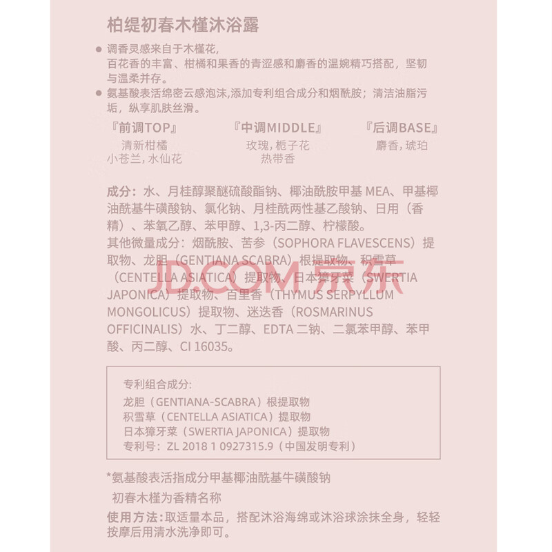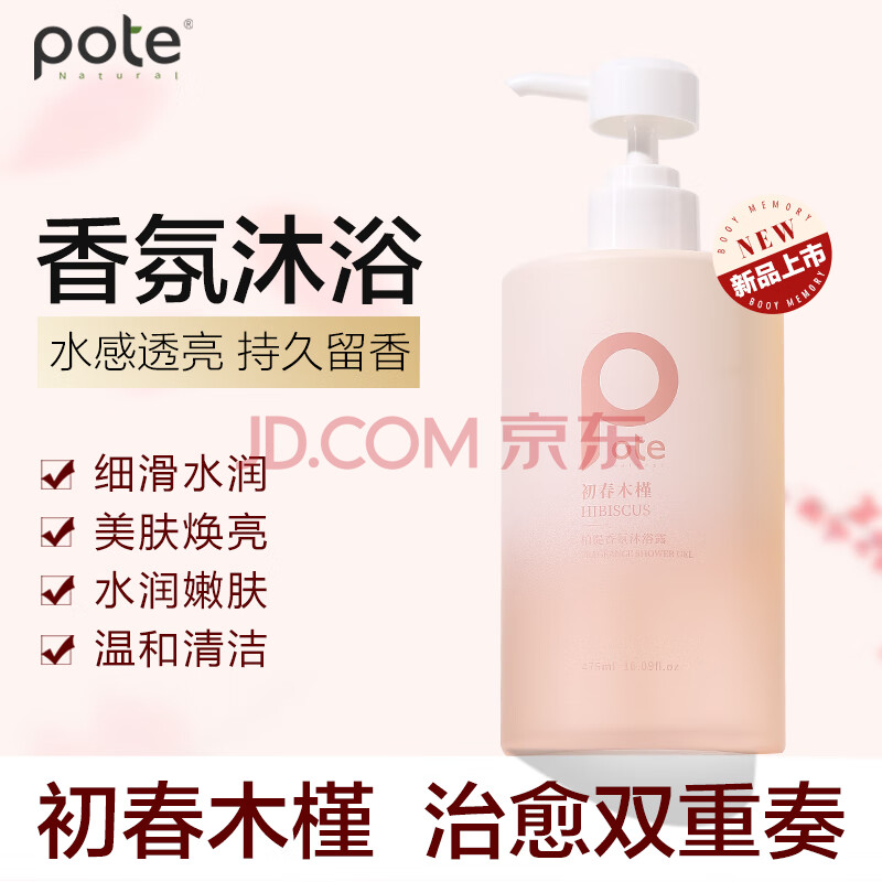 商品相册:柏缇初春木槿香氛沐浴露 香味持久保湿除螨亮肤氨基酸男女通用 475ml第