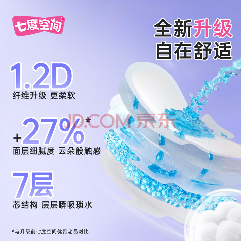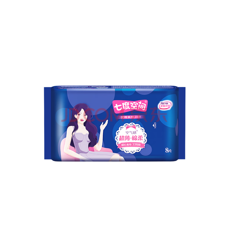 商品相册:七度空间优雅卫生巾棉柔超薄透气超长夜用姨妈巾338mm8片【新国标认证】第