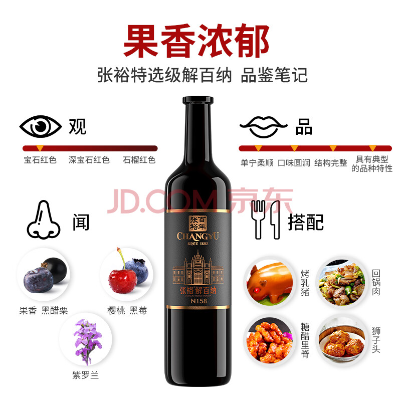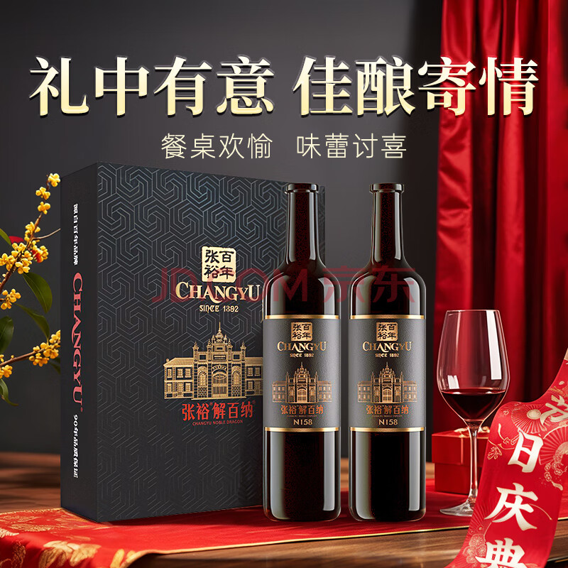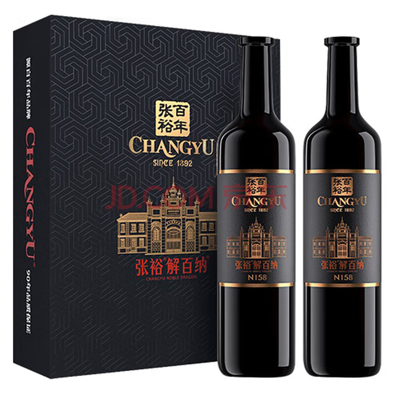 商品相册:张裕九代解百纳N158 干红葡萄酒 750ml*2瓶 蛇龙珠 红酒礼盒 收藏送礼第
