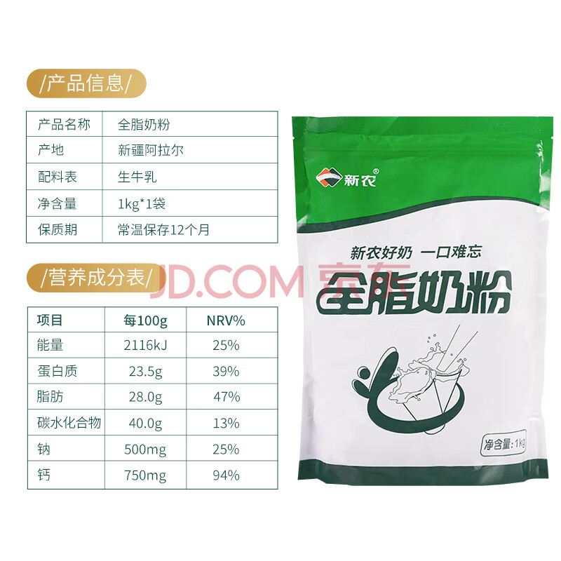 商品相册:新农 全脂奶粉1kg/袋 中老年奶粉 成人奶粉 新疆奶粉第