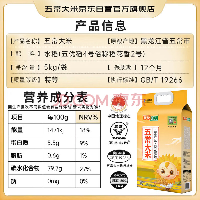商品相册:五常大米官方溯源 葵花阳光 特等五常大米 10斤 原粮稻花香2号 当季新米第