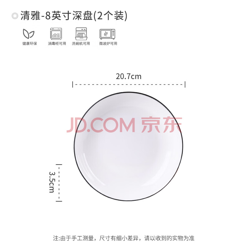 商品相册:浩雅釉下彩景德镇餐具陶瓷餐盘碟子菜盘饭盘汤盘清雅8英寸深盘2个装第