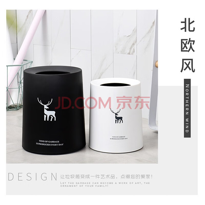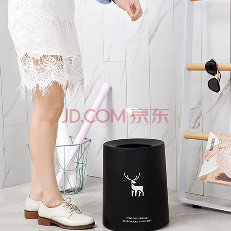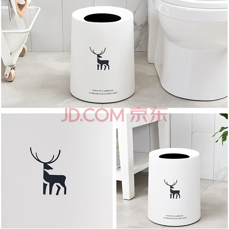 商品相册:依朴北欧垃圾桶双层无盖8L圆形白色家用客厅卧室厨房卫生间办公室大号第