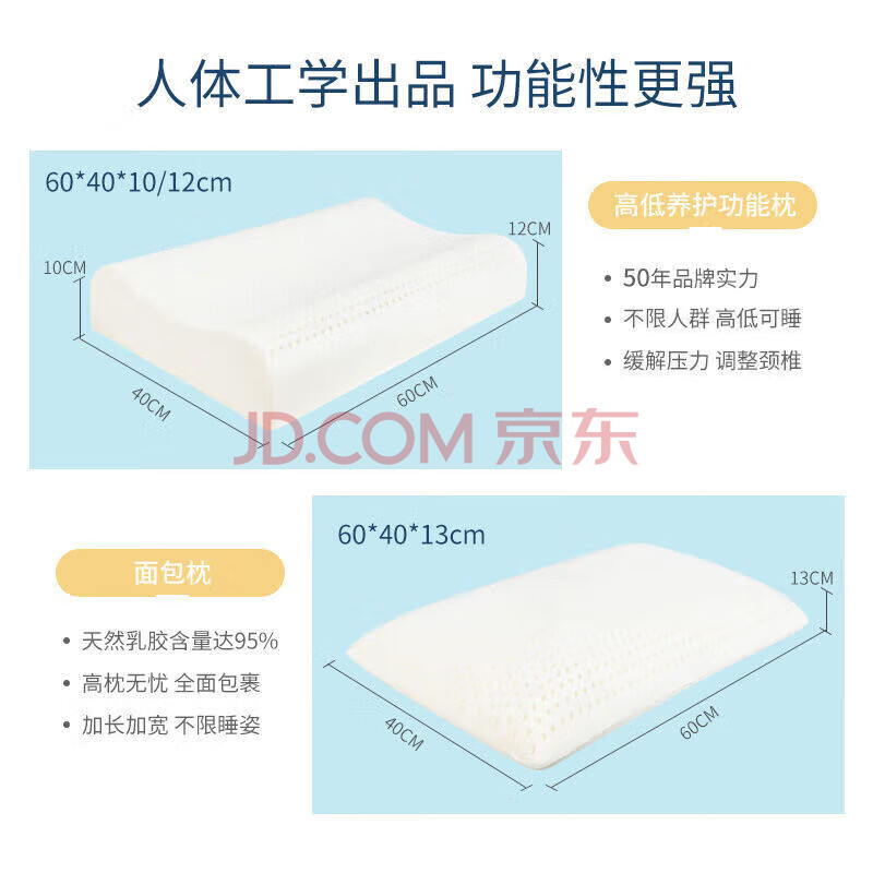 商品相册:TAIPATEX泰国原芯进口95%特拉雷乳胶枕头成人颈椎枕芯 单只礼盒装40*60cm第