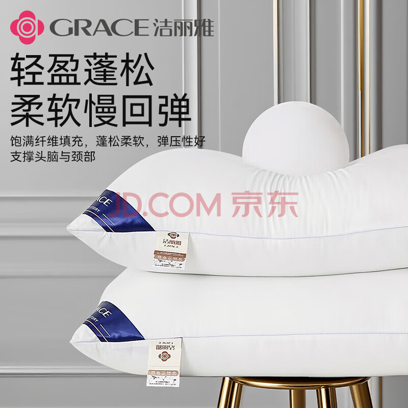 商品相册:洁丽雅(Grace)枕头枕芯 颈椎星级酒店枕羽丝绒枕头芯纤维软枕芯 白色 45×70cm第