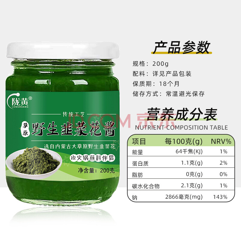 商品相册:陇黄 内蒙古野生韭菜花酱200g 火锅羊肉蘸料调料韭花酱拌饭酱下饭菜第