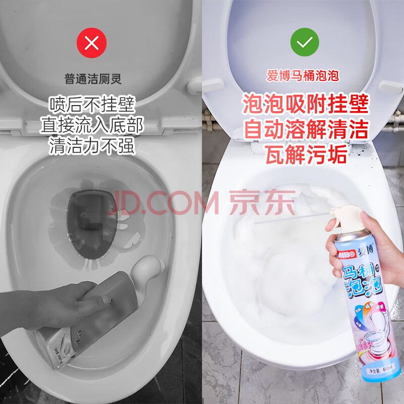商品相册:爱博马桶清洁剂650ml 洁厕马桶泡泡慕斯 强力去黄除尿垢洁厕灵 玫瑰香第
