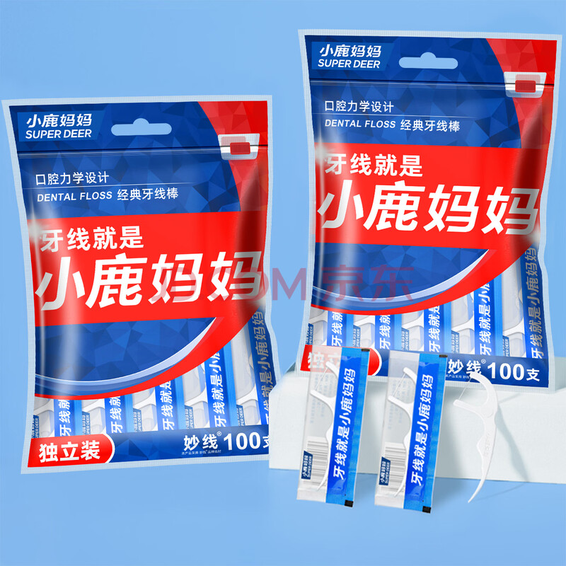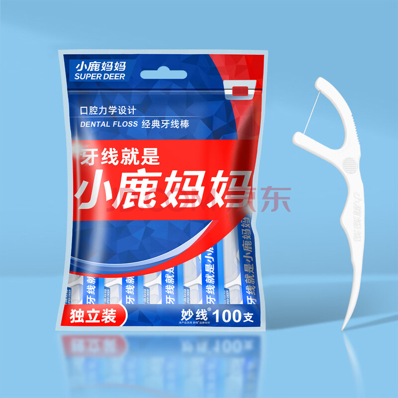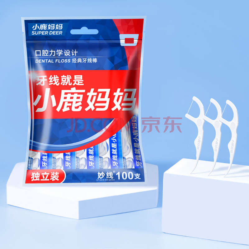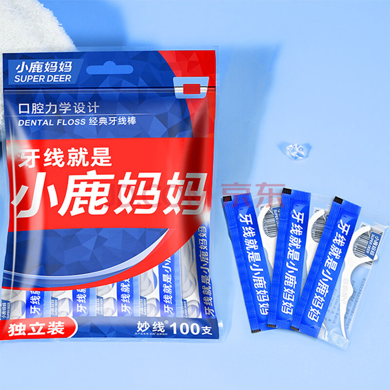 商品相册:小鹿妈妈 洁齿护理牙线棒单支独立包装经典牙线棒牙签 共300支第
