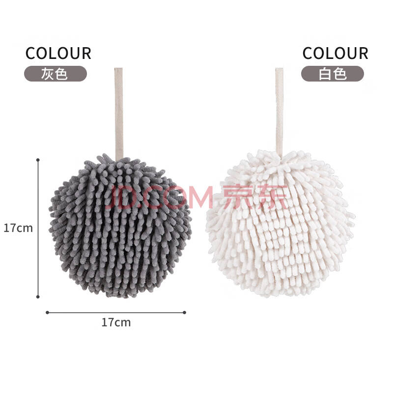 商品相册:洁丽雅(Grace)擦手球17*17cm*2条雪尼尔加厚吸水巾厨房卫生间浴室抹布 白灰第