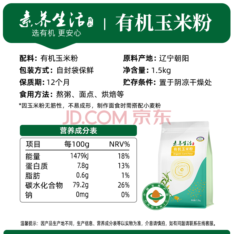 商品相册:素养生活有机玉米粉3斤 纯玉米面粉 棒子面 窝窝头粉 苞米面 杂粮面粉第