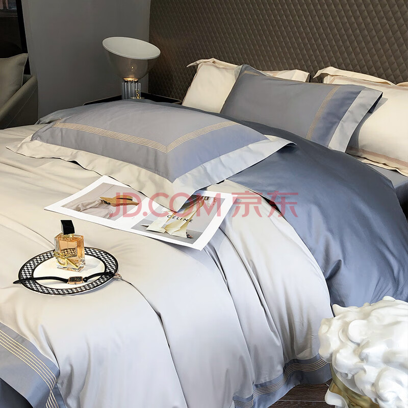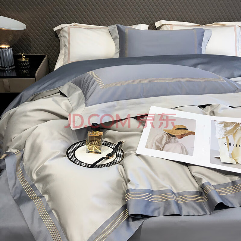 商品相册:La Torretta140支澳棉四件套纯棉 高端长绒棉刺绣床上被套床单 灰1.8/2.0m床第