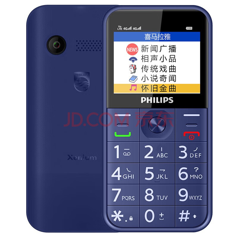 商品相册:飞利浦(PHILIPS)E163K 4G版 宝石蓝 老人手机智能 移动联通电信全网通4G 直板按键 儿童学生备用功能老年机第
