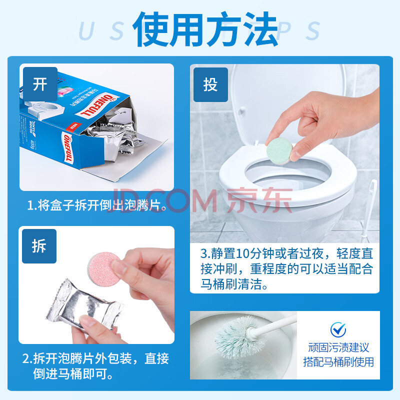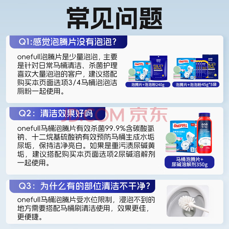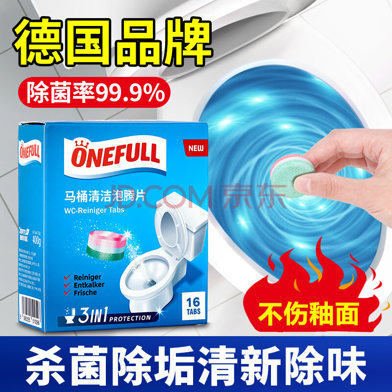 商品相册:ONEFULL马桶泡腾片16粒洁厕灵厕所清洁剂强力去渍除垢活氧净除异味神器第