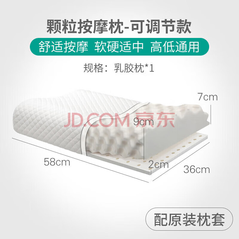 商品相册:JaCe泰国原装进口乳胶枕按摩颗粒护头颈枕头可调节高度96%天然含量第