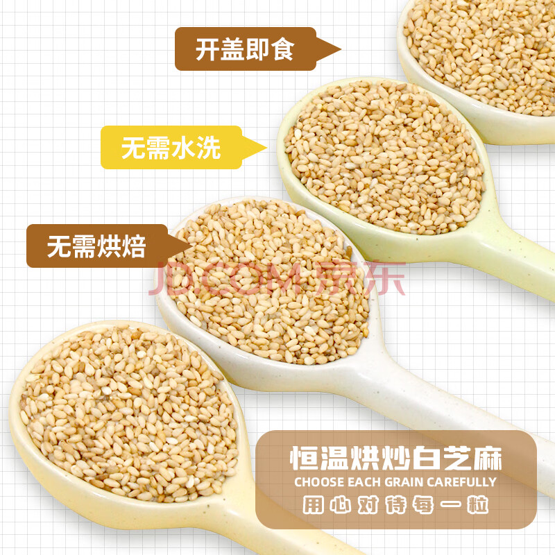 商品相册:李小谷 熟白芝麻500克罐装(凉拌烘焙炒熟芝麻酱原料黑芝麻伴侣杂粮)第