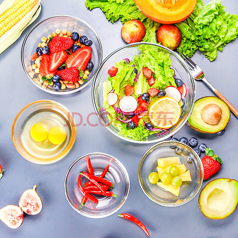 商品相册:Ocean泰国进口玻璃沙拉碗泡面碗汤碗水果甜品碗五件套装第