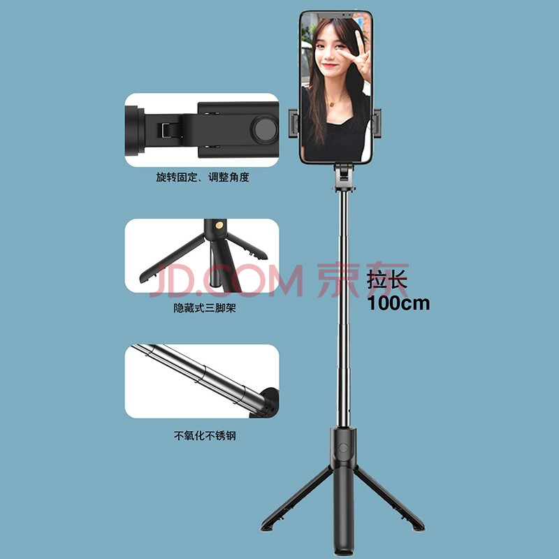 商品相册:Bkayp 自拍杆三脚架手机支架拍照旅游神器桌面防抖稳定器手持杆蓝牙拍视频抖音vlog适用苹果华为小米第