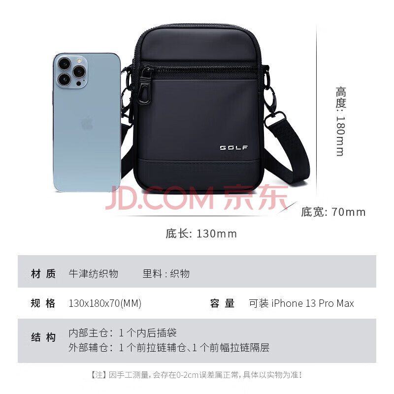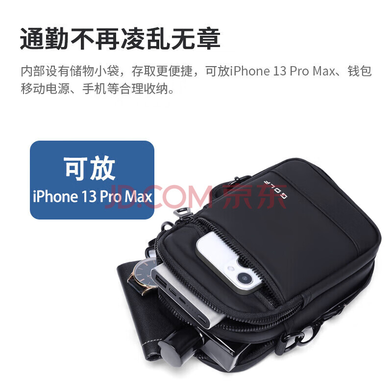 商品相册:高尔夫GOLF单肩包男士休闲大容量斜挎包男多隔层手机包防泼水潮流随身运动挂包百搭时尚小背包5I796325J雾黑第