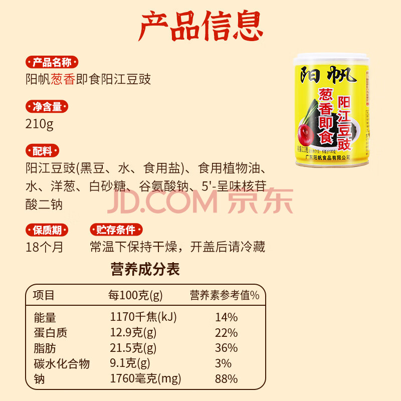 商品相册:阳帆阳江豆豉酱 0添加防腐剂葱香味即食210g 拌饭拌面酱炒菜调味酱料第