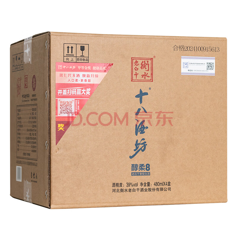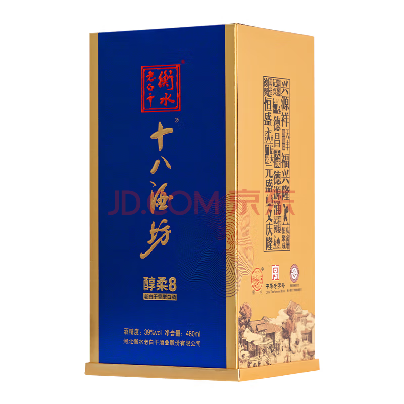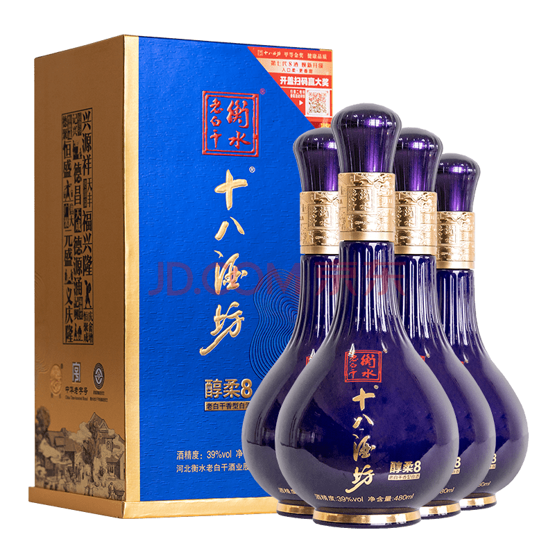 商品相册:十八酒坊衡水老白干 醇柔典范8酒 老白干香型白酒39度 480ml*4瓶 整箱送礼第
